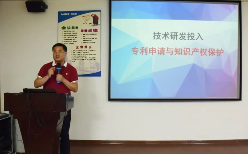 圖為海恩德機電陳鵬奇分享 海恩德機電陳鵬奇作為代表上臺分享公司在知識產(chǎn)權(quán)運營方面的經(jīng)驗。他分別從公司發(fā)展歷程、研發(fā)投入、現(xiàn)有專利布局等方面進(jìn)行介紹。據(jù)陳鵬奇透露,目前公司正參與申報高價值專利組合項目,未來將構(gòu)筑相關(guān)專利池。